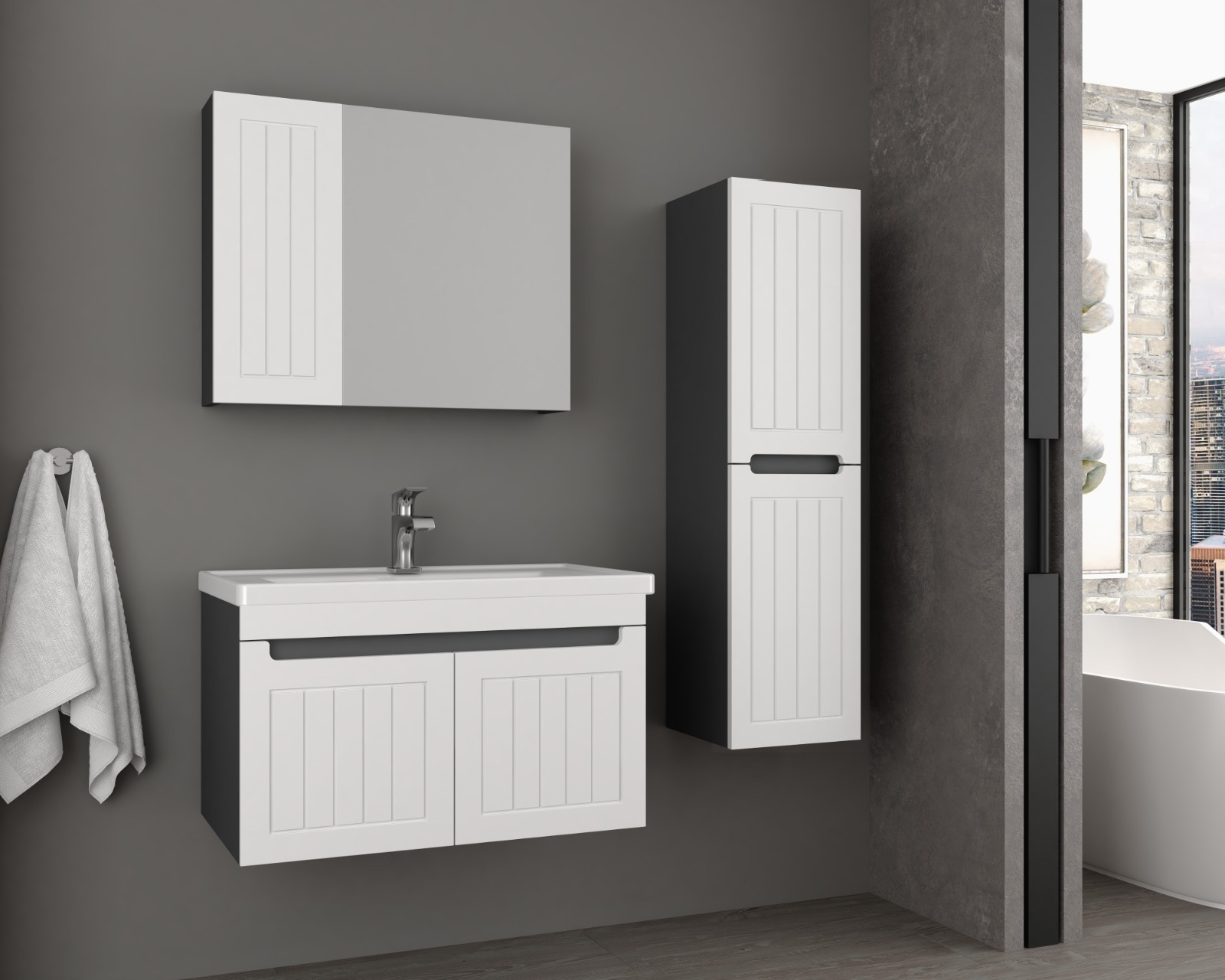 SOLİD MDF 80 CM BANYO DOLABI ANTRASİT GRİ
